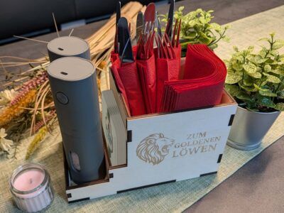 Die Möglichkeiten, die uns die moderne Lasertechnik eröffnet, sind nahezu unbegrenzt. Wir können eine Vielzahl von Materialien bearbeiten, was dir unzählige kreative Freiheiten bietet. Die Arbeit mit dem Laser eröffnet auch im Bereich des Brandings völlig neue Dimensionen. Du möchtest dein einzigartiges Business-Branding kreieren oder deinen Verein durch personalisierte Artikel repräsentieren? Dank unserer Technologie können wir deine Visionen maßgeschneidert und präzise umsetzen.